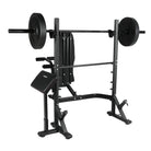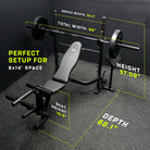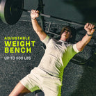 - PRCTZ Olympic Weight Bench with Rack - Is the ideal at home muscle building and strength training machine. The heavy duty main frame is made from high quality steel tubing and designed to support a maximum user weight of 300 lb., and a maximum total weight of 620 lb.. The integrated safety spotters prevent injury and can be transformed into a squat and power lift station. This full-body workout bench allows you to perform a variety of upper and lower body workouts with the detachable and padded leg developer or the preacher curl pad. After the workouts are finished, the built-in weight plate storage help organize your grip plates or bumper plates easily.