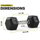 PRCTZ Rubber Encased Hex Dumbbell, Pair, 5-40lb