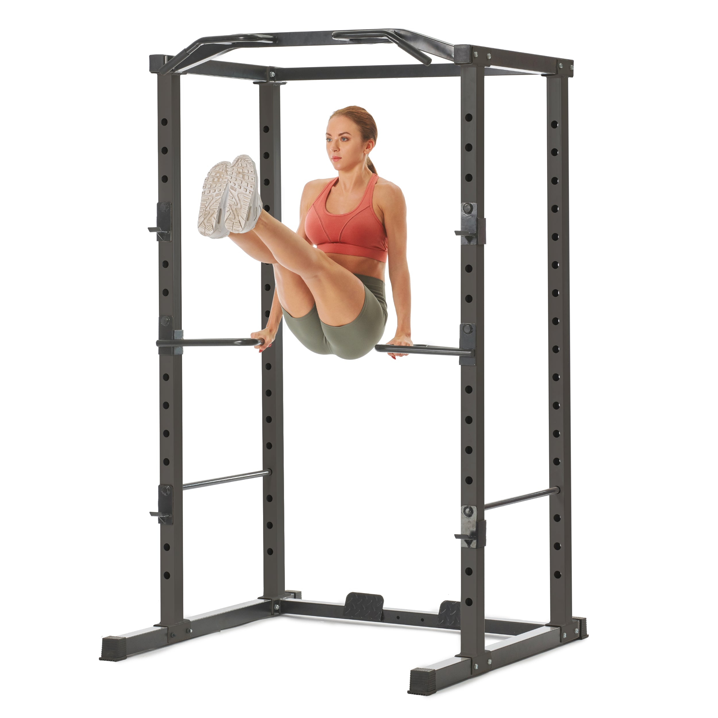 PRCTZ Adjustable Power Cage for Full-Body Workout is the ideal at home muscle building and strength training machine. The heavy duty main frame is made from high quality steel tubing and designed to support a maximum user weight of 1000 lbs, and a maximum total weight of 2500 lbs. This full-body workout machine allows you to perform a variety of upper and lower body workouts with the pull-up bars, Dip attachments, and adjustable J-hooks made for squats and flat bench. Our system includes safety bars if your feeling extra strong and want to take your workout to the maximum without the worry hurting yourself.