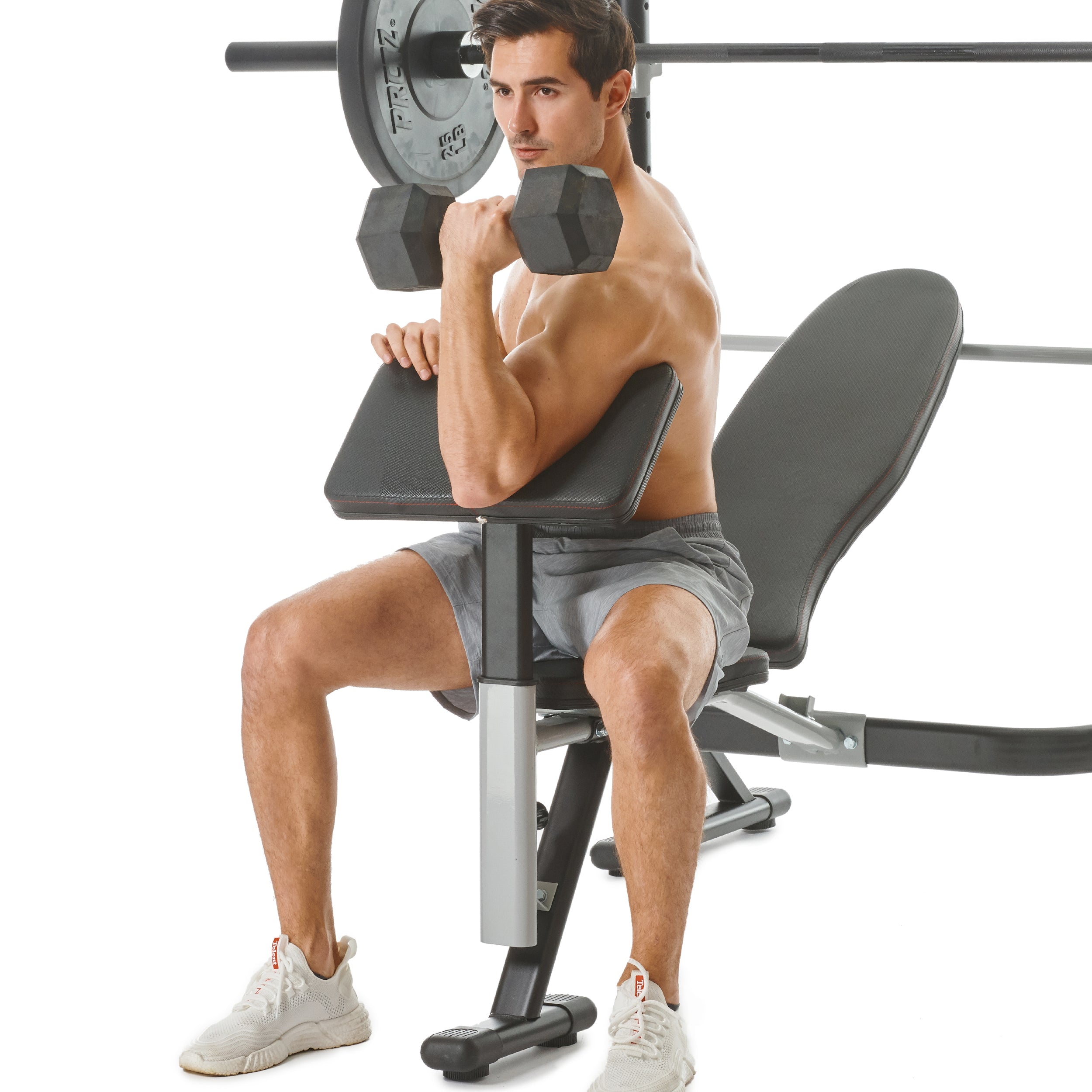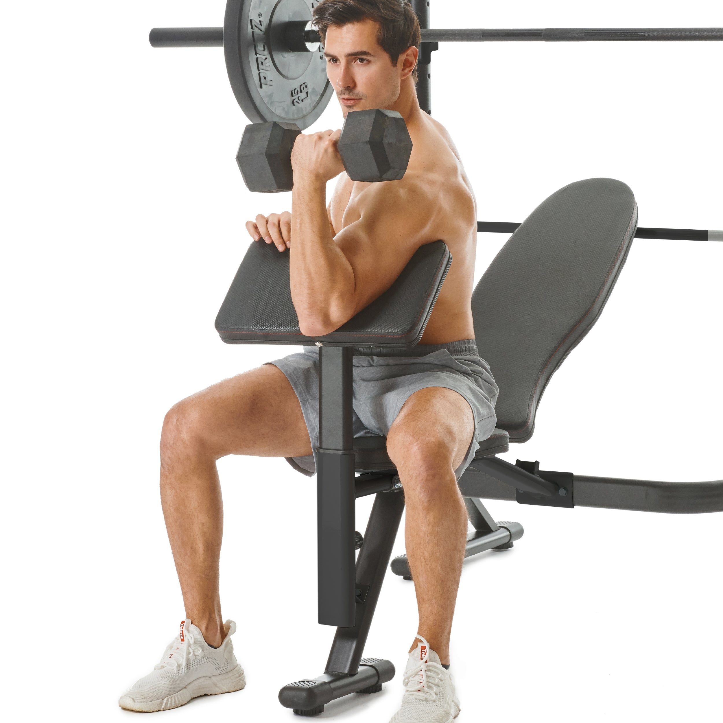 PRCTZ Adjustable weight Bench with Olympic Squat Rack, Arm and Leg Developer with Preacher Pad
