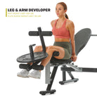 - All-in-One Design- this full-body workout bench allows you to perform a variety of upper and lower body workouts with the detachable 6-roll leg developer for targeting hamstring, glutes, and calves and preacher curl pad for comfortably isolate your biceps and forearms