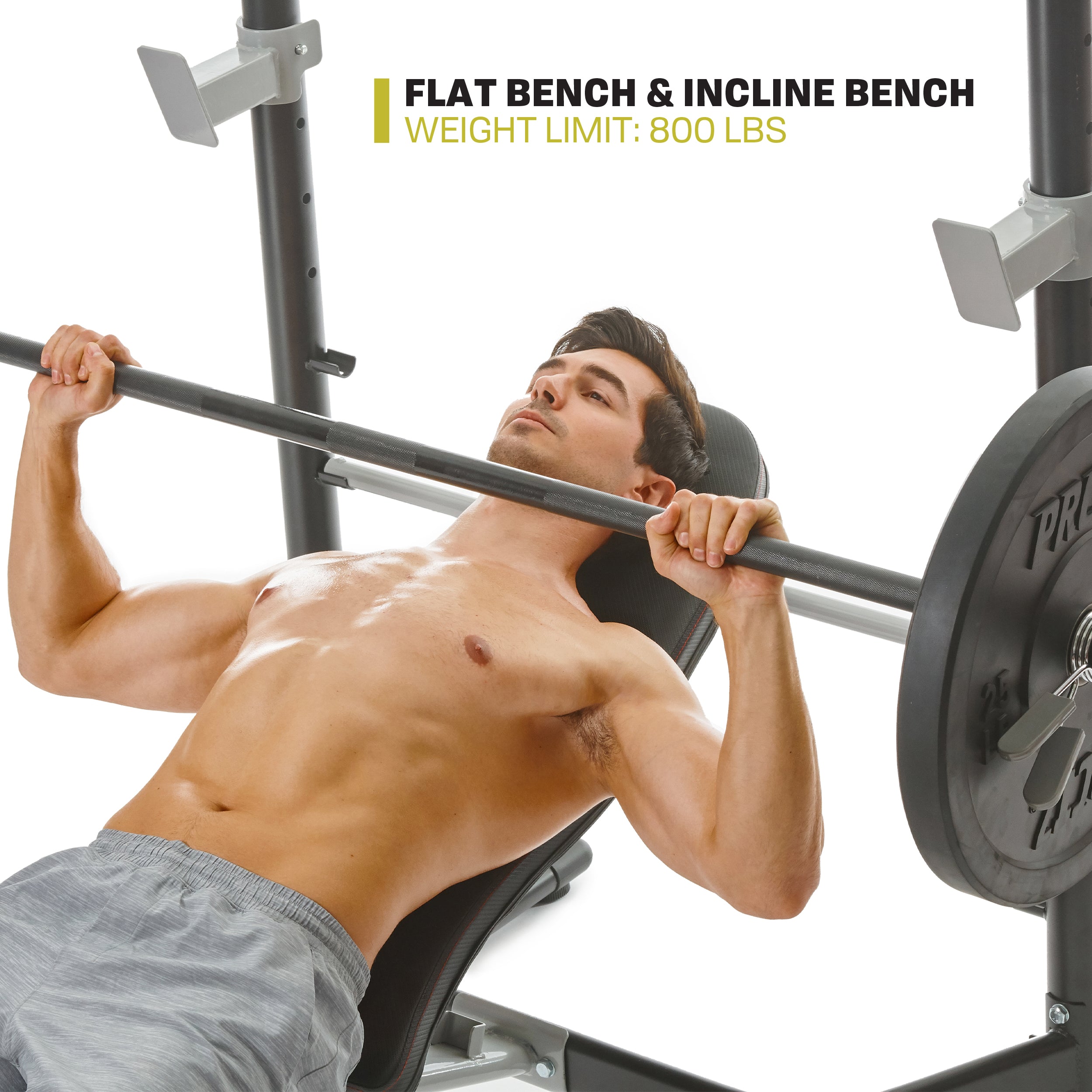 - Flat bench and Incline Bench Max Weight: 750, Squat Rack Max Weight: 1000 Pounds, Weighted Sleeve Plate Max Weight: 500 Pounds, Seat Max Weight: 500 Pounds