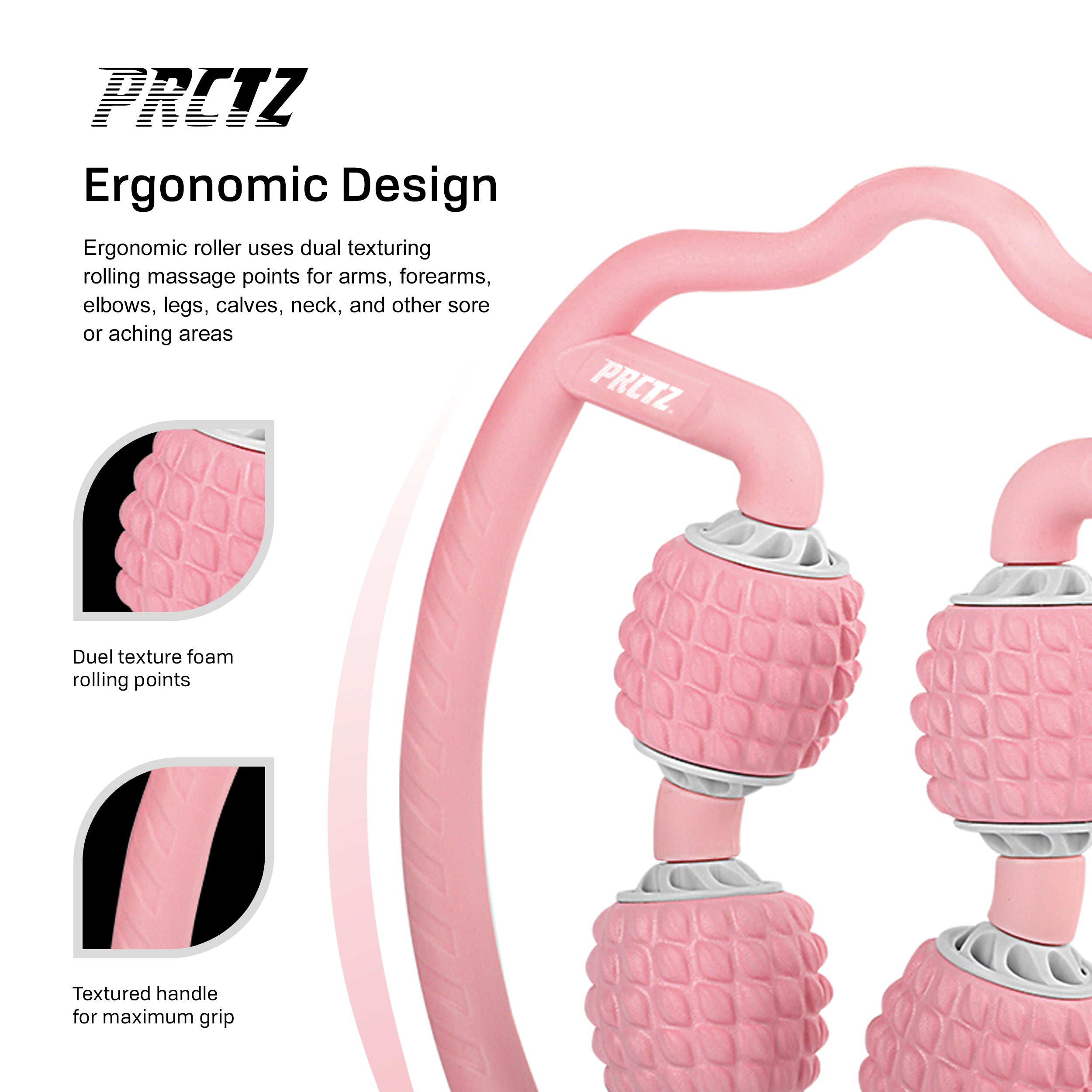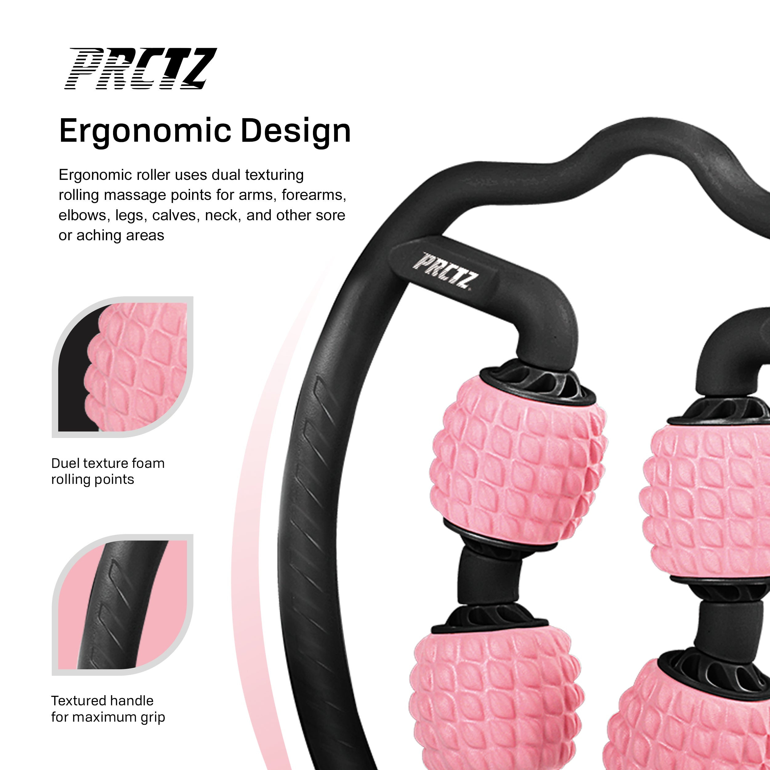 - PRCTZ Massage Foam Roller uses dual textured rolling massage points for arms, forearms, elbows, legs, calves, neck, and other sore or aching areas