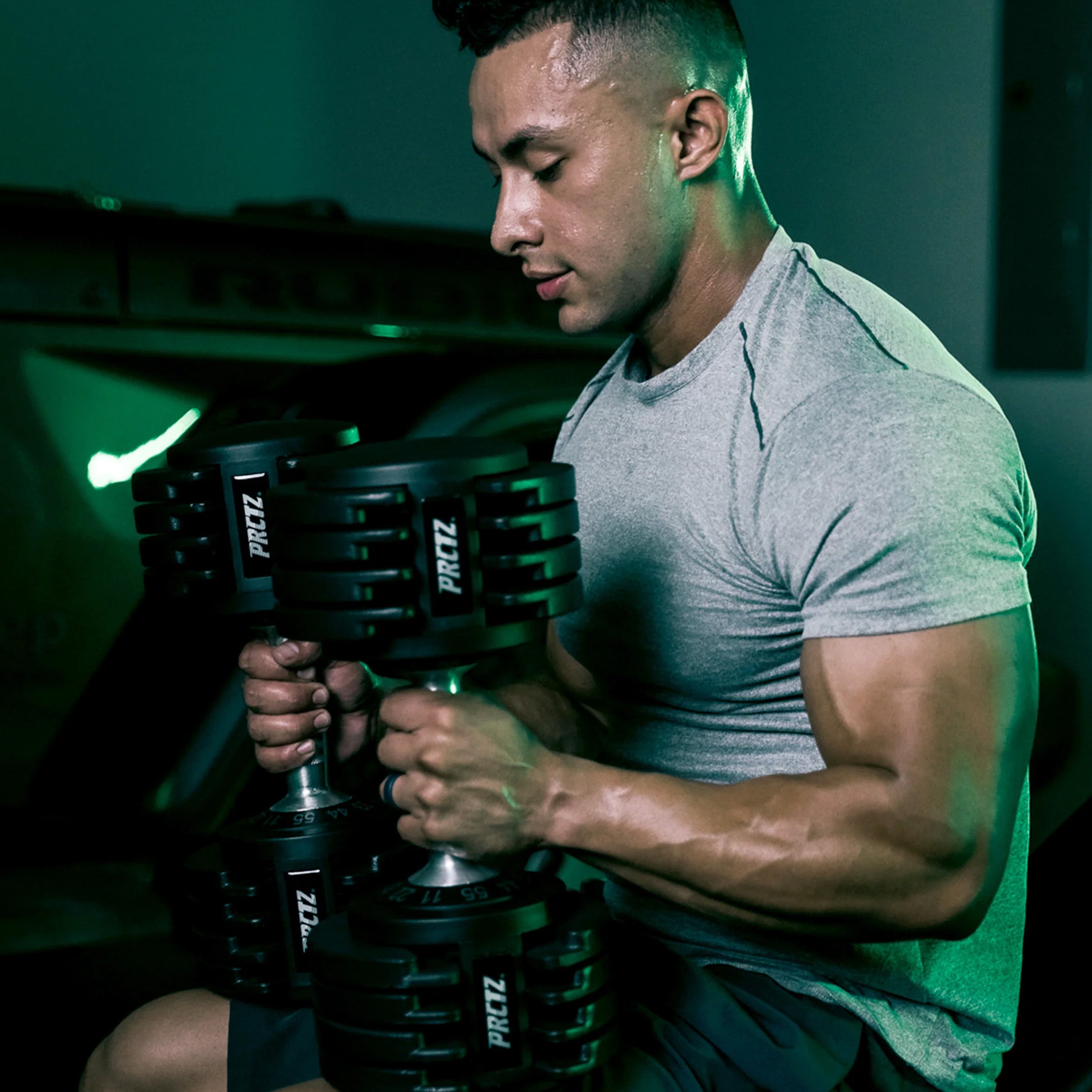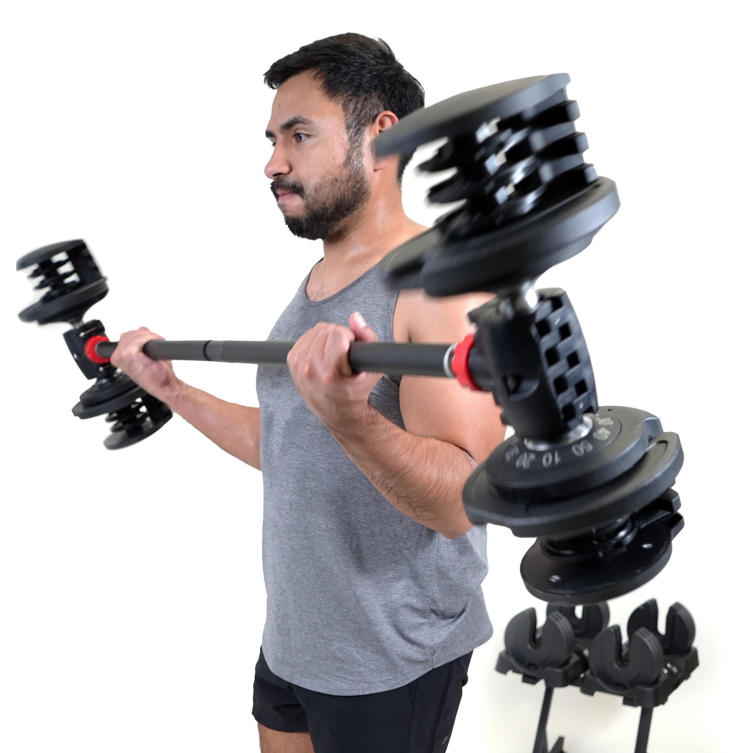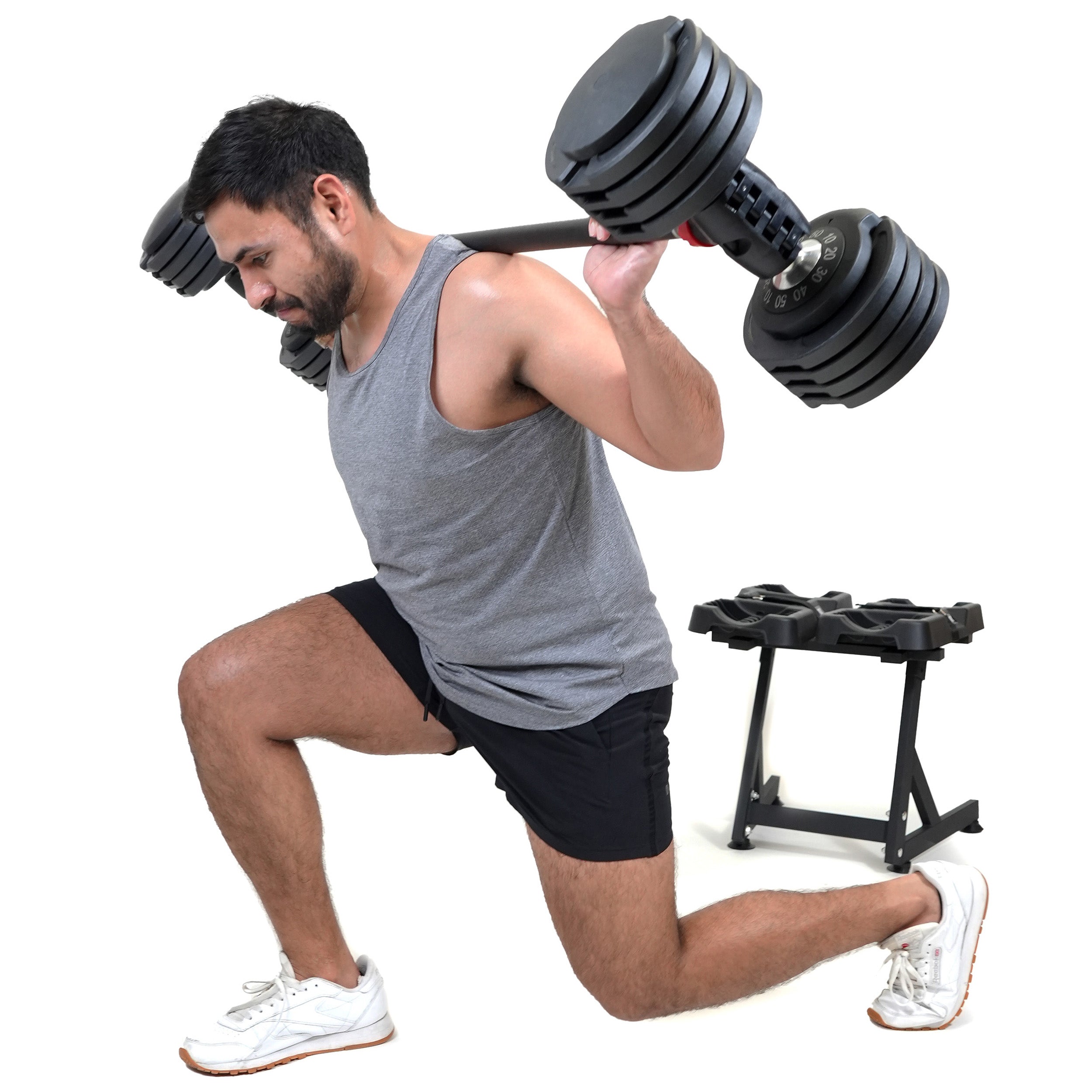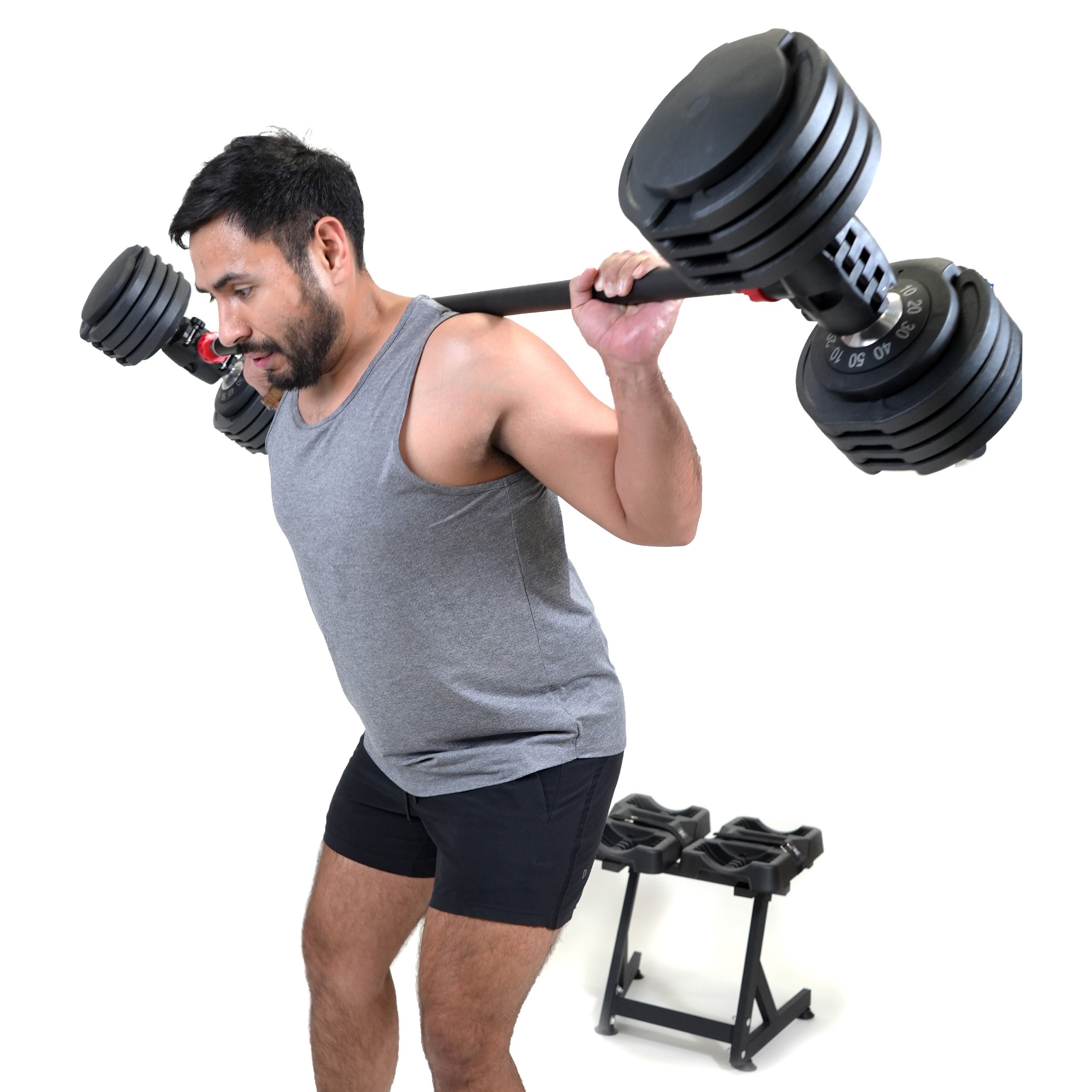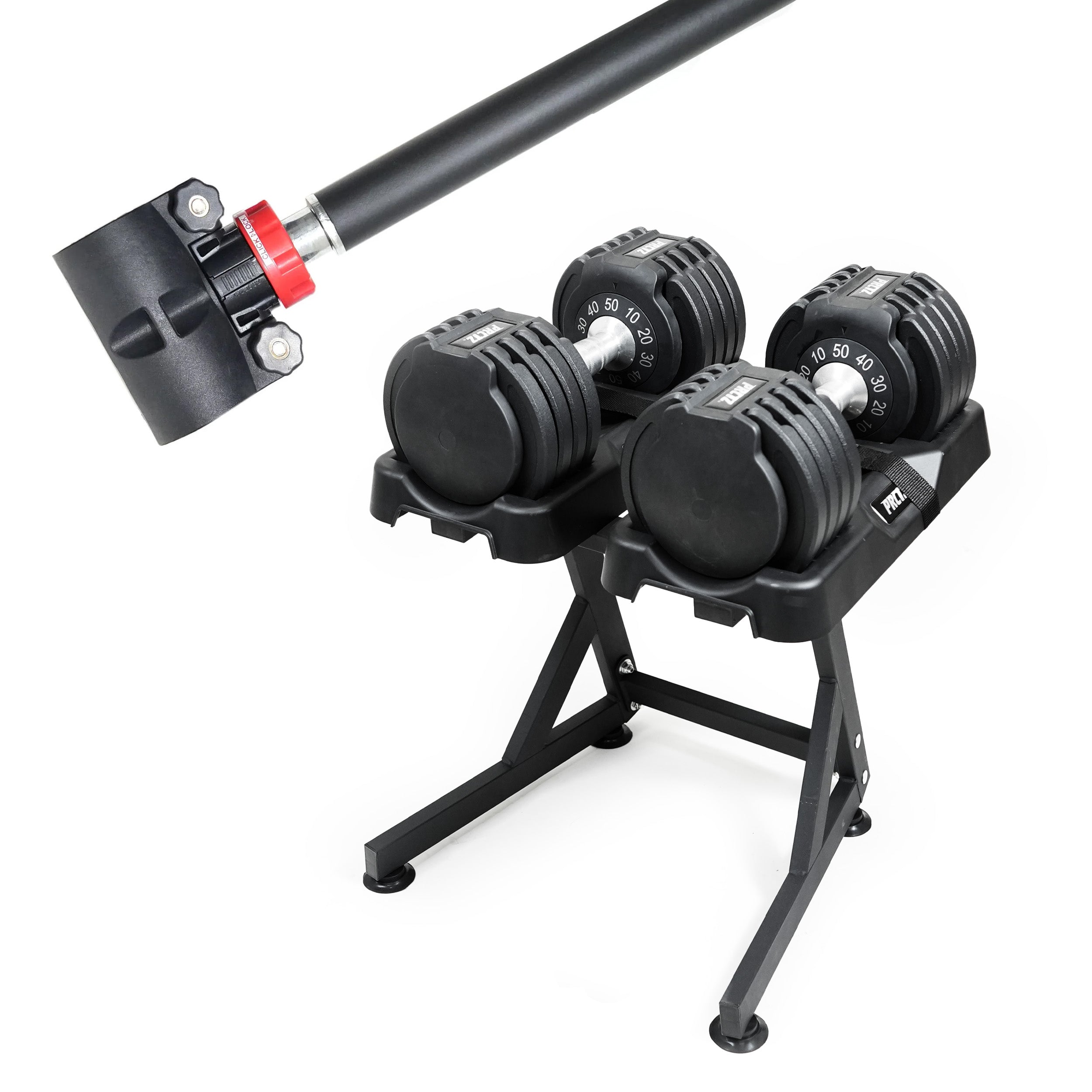 PRCTZ Modular Weight Training Barbell with 2x 10-50 lb Adjustable Dumbbell and Stand