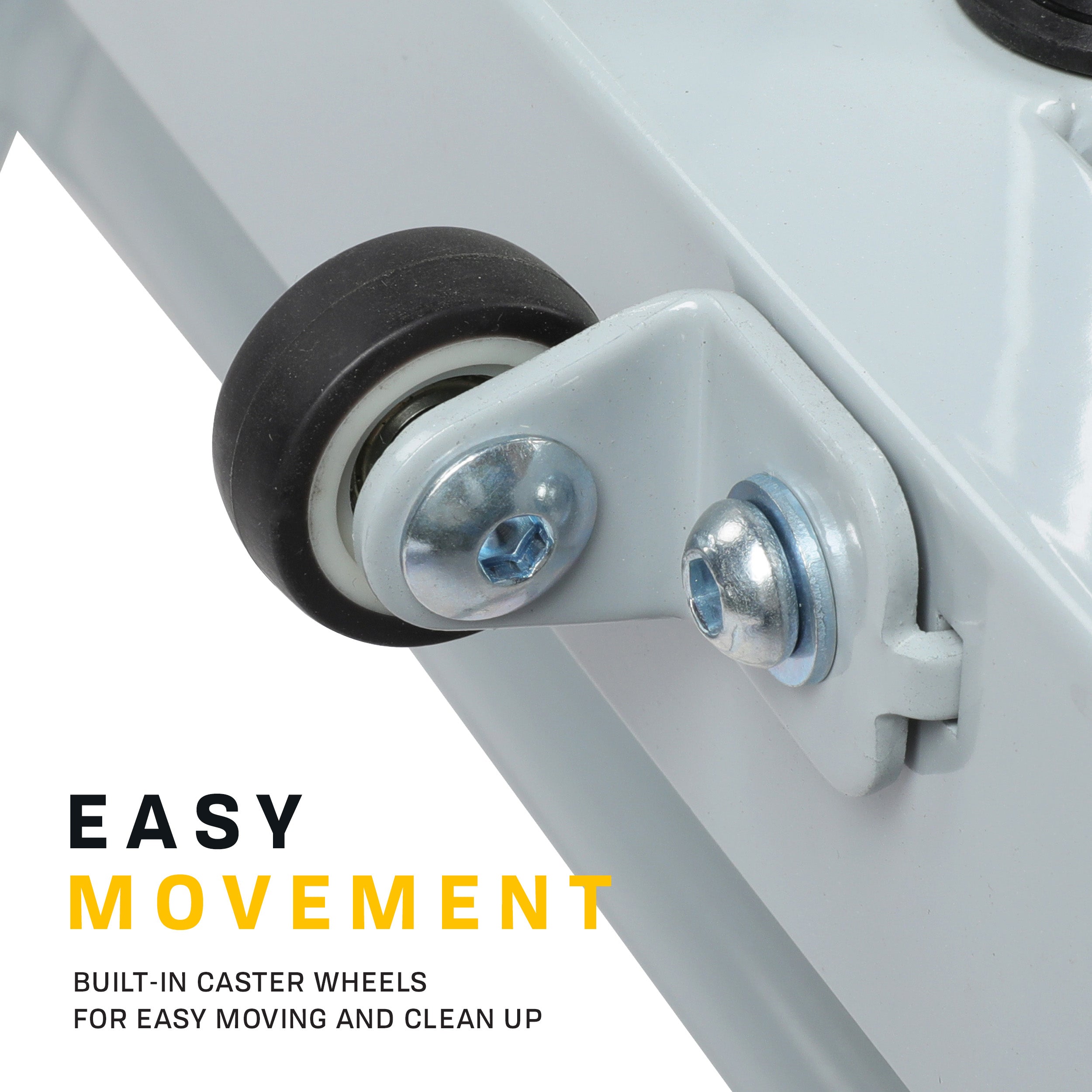 - Space-Saving Storage – Folds flat with built-in transport wheels for convenient storage