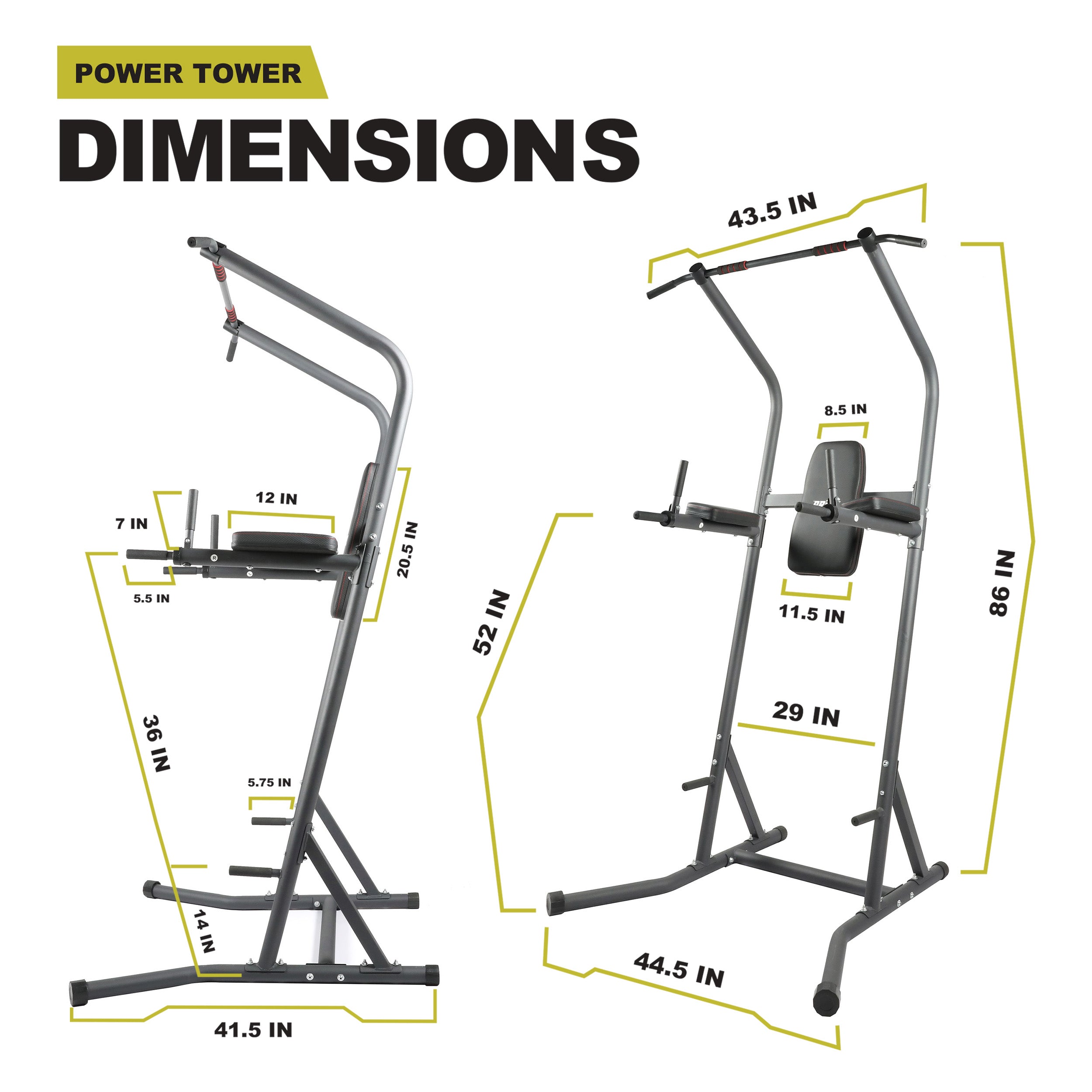 The PRCTZ Power Tower is a versatile and sturdy piece of fitness equipment designed for a full-body workout. With multiple stations for pull-ups, dips, push-ups, and vertical knee raises, the PRCTZ Power Tower allows you to target multiple muscle groups in one convenient and compact unit. The sturdy steel frame supports up to 250 lbs and features non-slip grips for safety during your workout. The Power Tower is easy to assemble and can be placed in any room of your home or gym. Get ready to build strength and achieve your fitness goals with the Power Tower.